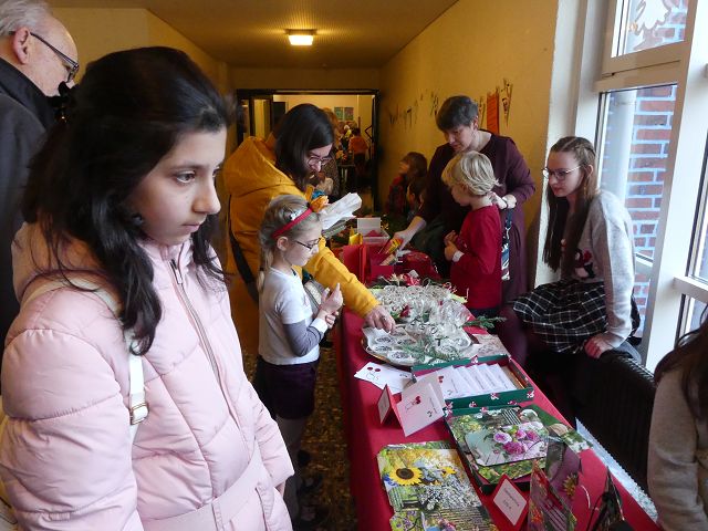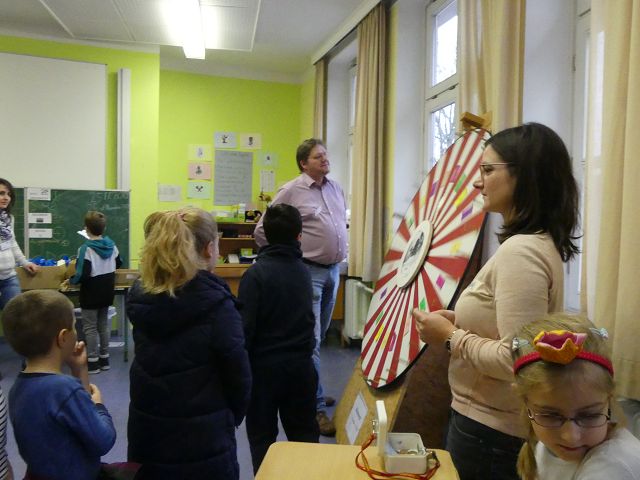 Das Angebot war in diesem Jahr wieder sehr abwechslungsreich und interessant. Neben der Caféteria mit leckeren Torten und Kuchen sowie dem Glücksrad gab es Verkaufsstände der Klassen und unseren Infostand von Schule und GBS. Die Bastelstuben und die Aufführungen der 4. Klassen „Manni, der Postbote“ wurden gut besucht.