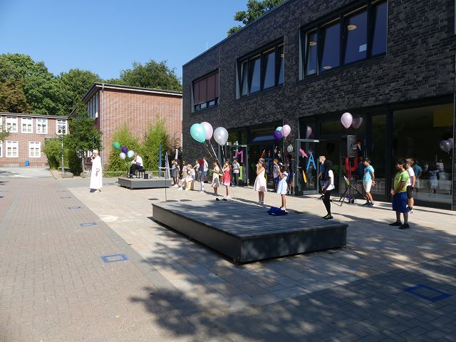 Am 11. und 12. August wurden in unserer Schule 72 Erstklässler und 48 Vorschüler*innen eingeschult. Nun sind wir komplett und freuen uns, dass die Einschulungen so feierlich begangen werden konnten. Die 4. Klassen sangen dazu den “Furtweg Song“ und Herr Rother untermalte das Ganze mit Musik. Nach einer kurzen Ansprache der Schulleiterin, Frau Schön, begaben sich unsere Neulinge gut gelaunt zu ihren Klassenlehrer*innen und erhielten die erste Unterrichtsstunde. Ein aufregendes Jahr beginnt und dies wurde gebührend gefeiert. Herzlich Willkommen in unserer Schule! |