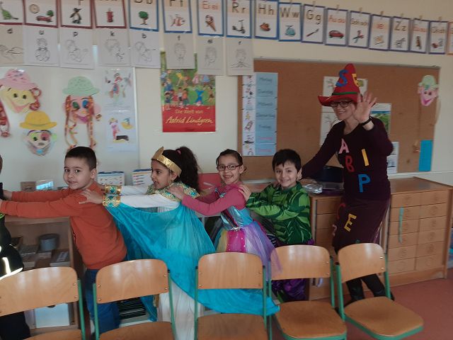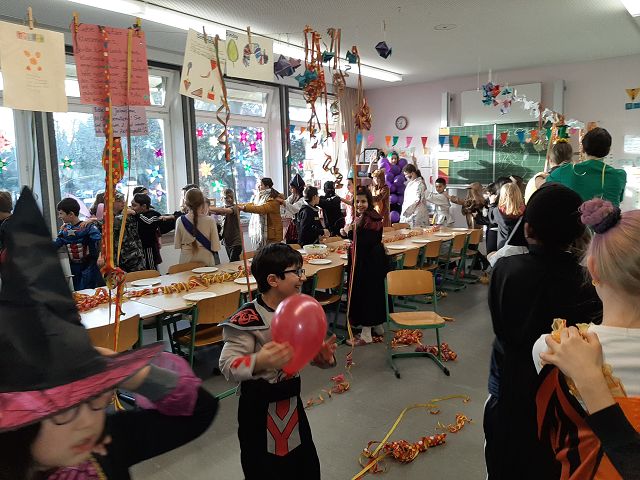 Heiter und ausgelassen war die Stimmung am Faschingstag an unserer Schule. An diesem Tag kamen alle Kinder und Erwachsene mit guter Laune und originell verkleidet in unsere Grundschule. Wie man auf den Fotos sieht, wurde in den bunt dekorierten Klassenräumen lecker und ausgiebig gegessen, gespielt, gelacht und getanzt. Besonders gefreut haben sich die Kinder wieder auf die Polonaise und die Faschingsdisco in der Aula. So müsste Schule jeden Tag sein...