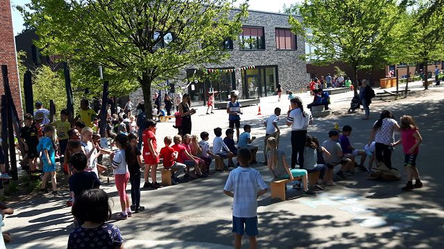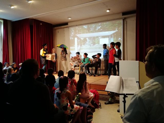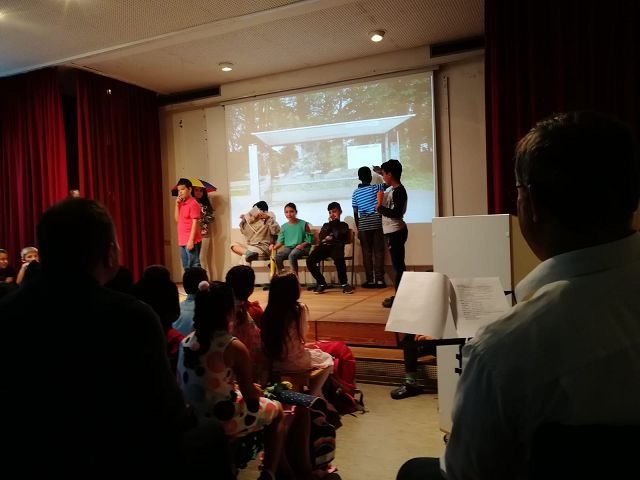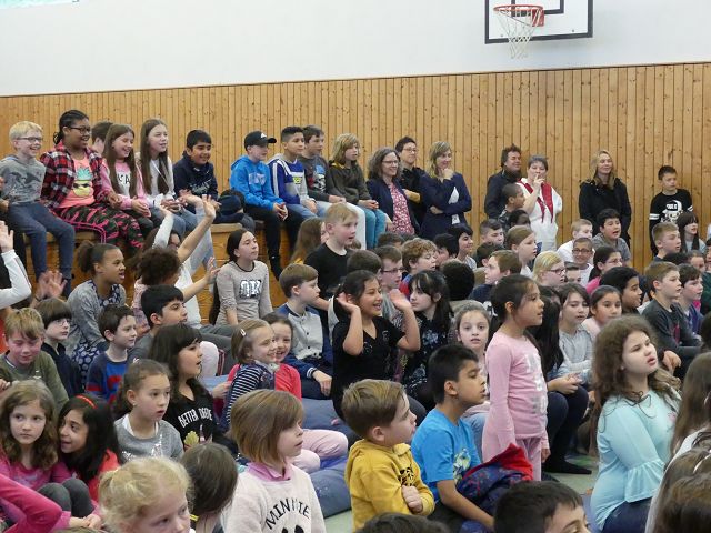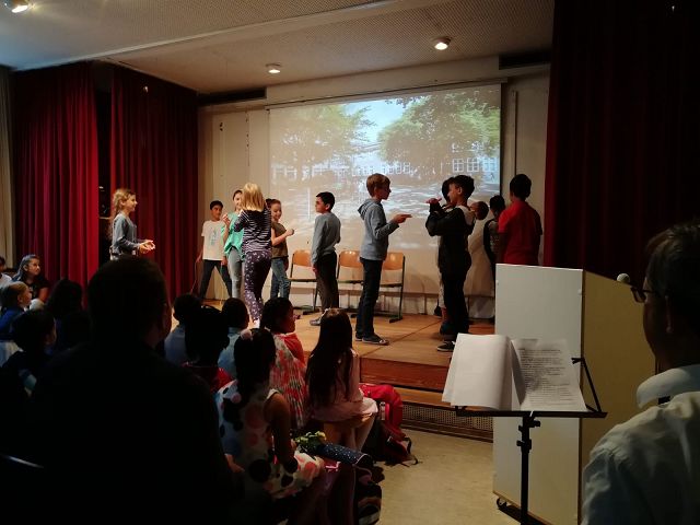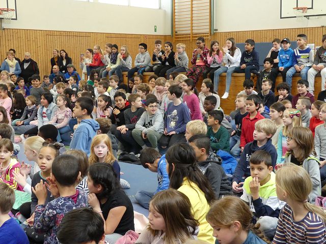 Am letzten Freitag vor den Maiferien fand unser traditionelles Frühlingstreffen statt. Alle Kinder der Schule mit ihren Lehrerinnen und Lehrern, so wie zahlreich erschienenen Eltern, versammelten sich dafür in unserer Sporthalle. Dieses Mal waren die c-Klassen dran und präsentierten uns stolz ihre in den letzten Wochen eingeübten Lieder und Gedichte. Es gab Soloauftritte. Danila aus der Klasse 3b und Channay aus der Klasse 3a spielten uns am Klavier vor. Eriksona aus der 4a sang das Lied „Jeder Mensch hat einen Traum“.
