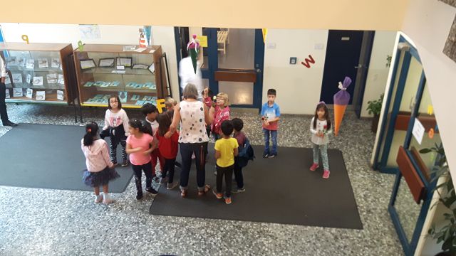 Alle Klassen und Lehrer der Schule Furtweg haben sich sehr bemüht, diesen Tag für die Schulanfänger besonders schön zu gestalten. Die Zweitklässler empfingen die Erstklässler mit einem Spalier und überreichten jedem Kind eine Rose. Der Jahrgang 3 hat die Schule mit Schultüten und Begrüßungsbriefen für die Erstklässler geschmückt und die Viertklässler führten unter der Leitung von ihren Klassenlehrerinnen und Herrn Rother das Theaterstück „Manni, der Postbote“ auf. Die Schulleiterin, Frau Schön und der stellvertretende Schulleiter, Herr Roselius führten durch die festliche Veranstaltung. Anschließend an das Theaterstück wurden alle Erstklässler und Vorschulkinder einzeln auf die Bühne gebeten und von ihren Klassenlehrer/innen begrüßt. Mit dem Ranzen auf dem Rücken ging es dann zur ersten Unterrichtsstunde in die jeweiligen Klassen.
