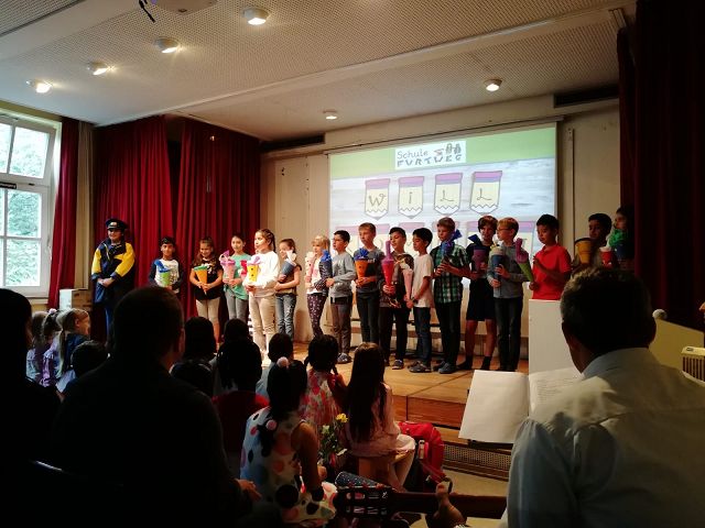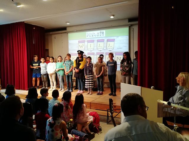 Für diesen besonderen Tag haben sich alle Kinder extra schick gemacht und saßen gespannt auf ihren Stühlen in der Aula. Die Eltern, Großeltern und Geschwister waren nicht minder aufgeregt.