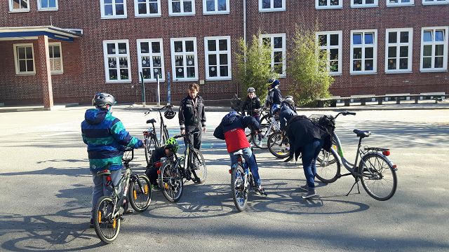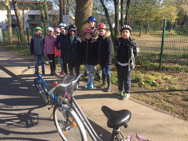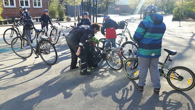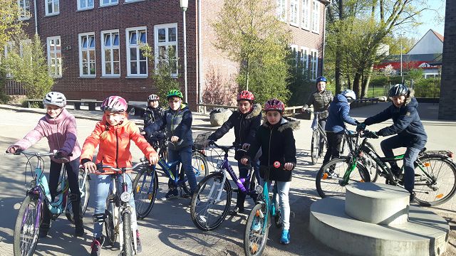 Im April stand für die 4. Klassen eine Woche lang das Thema Verkehrssicherheit auf dem Fahrrad im Mittelpunkt. Nach dem im Klassenraum die Verkehrspolizistin Oda Heyse den Schülerinnen und Schülern die Verhaltensweisen im Straßenverkehr anschaulich erklärt hatte, ging es raus. Zunächst auf dem Schulhof und dann auch im Straßenverkehr hatten die 4. Klässler die Gelegenheit zu zeigen, dass sie im Umgang mit dem Fahrrad im Straßenverkehr sicher sind.