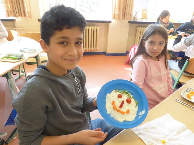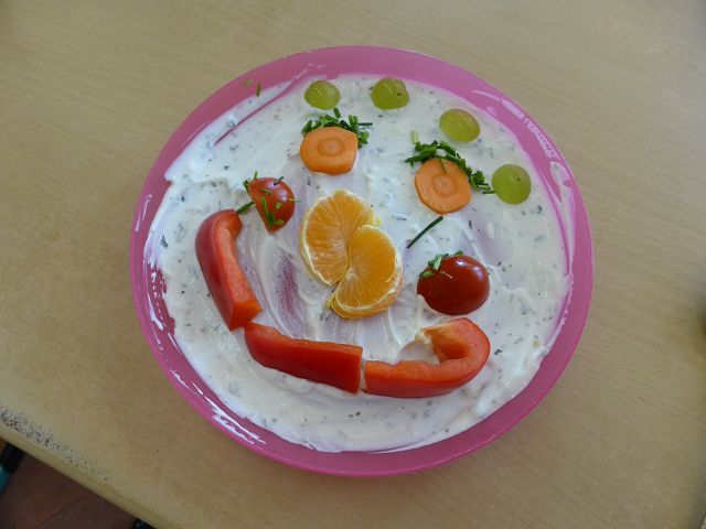Den Anfang machte das Projekt „5 am Tag“ von der Hamburger Krebsgesellschaft e.V. .Wir erfuhren, wie wichtig es ist, ausreichend Obst und Gemüse zu essen – am besten 5 Hände voll am Tag! Nachdem wir uns mit der Ernährungspyramide beschäftigt hatten, gingen wir gemeinsam mit Frau Bernecker und Frau Sevecke in einen Supermarkt am Eidelstedter Platz. Dort schauten wir u.a. in der Obst-/Gemüseabteilung und in der Getränkeabteilung verschiedene Lebensmittel genauer an. Wo kommt es her? Wie viel Wasser, Zucker,... und gute Nährstoffe sind darin enthalten? Zuletzt dann gestalteten wir uns unsere eigene kleine Schatzinsel aus Kräuterquark und Gemüse sowie Obst.