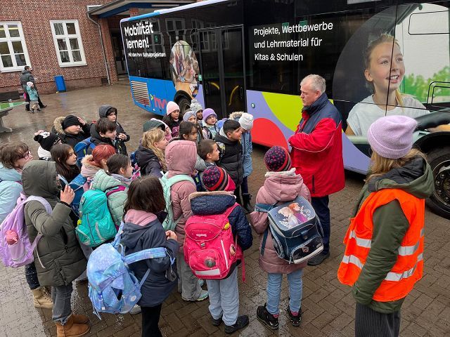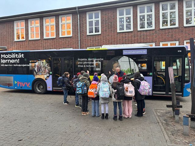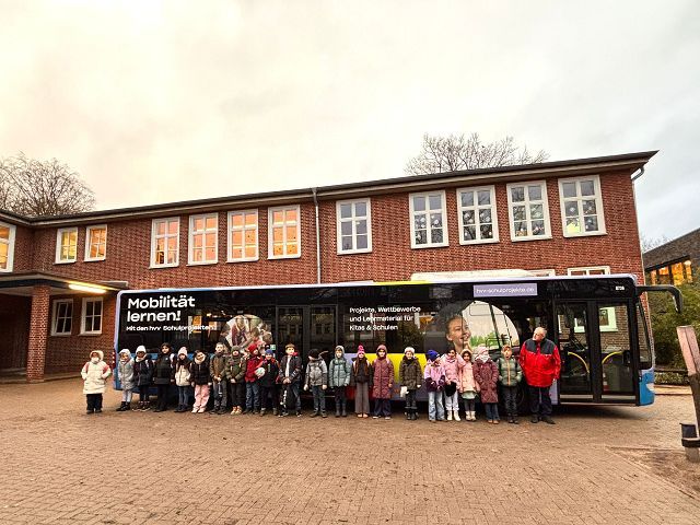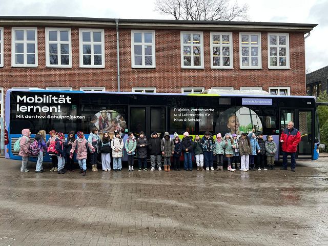 Heute hatten wir einen HVV Bus auf dem Schulgelände. Nein, dieser hatte sich nicht verfahren. Die Busschule vom HVV war zu Besuch bei uns und hat den Kindern eindrucksvoll und auf spielerische Weise elementaren Sicherheitsregeln bei der Fahrt mit Bus und Bahn beigebracht. Das richtige Verhalten in öffentlichen Verkehrsmitteln und das selbständige Fahren im Hamburger Verkehrsverbund (HVV) wurden geübt. Und zum Abschluss gab es noch für jeden eine Urkunde.